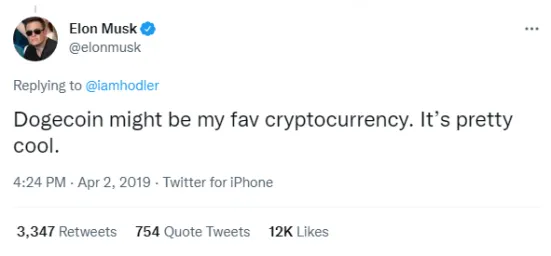Jackson Palmer mengatakan bahwa Dogecoin merupakan aset yang ringan dan memiliki daya tarik yang lebih besar. Faktanya, dalam sebuah cuitan di Twitter, CEO Tesla Elon Musk, memberikan pernyataan bahwa Dogecoin adalah koin favoritnya.