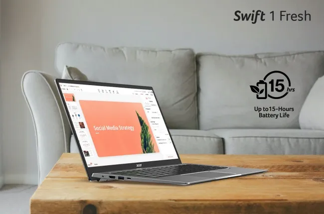 Laptop Acer Swift 1 Fresh (SF114-34) ini dirilis pada Maret 2021. Laptop ini memiliki desain yang tipis dan ringan, tepatnya hanya memiliki ketebalan 14,95 mm dan bobot 1,3 kg saja, membuat laptop ini sangat mudah untuk dibawa kemana-mana dan mendukung padatnya mobilitas sebagai mahasiswa. Namun, jangan salah, walaupun desainnya tipis dan ringan, laptop ini tetap kokoh karena berbekal material yang terbuat dari bahan aluminium. Salah satu ciri khas dari laptop seri Swift memang berbahan aluminium seperti ini. Ditambah lagi terdapat 3 varian warna yaitu pure silver, sakura pink, serta safari gold yang membuatnya semakin stylish.