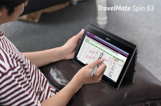 Laptop Acer TravelMate Spin B3 ini dirilis pada April 2020 bersamaan dengan series TravelMate B3. Laptop dengan ukuran layar 11,6 inchi ini cocok dibawa berpergian karena bentang layarnya yang tidak terlalu besar. Ya sesuai dengan namanya, “TravelMate”. Layar laptop ini juga dapat diputar hingga 360 derajat berkat engsel yang dimilikinya.