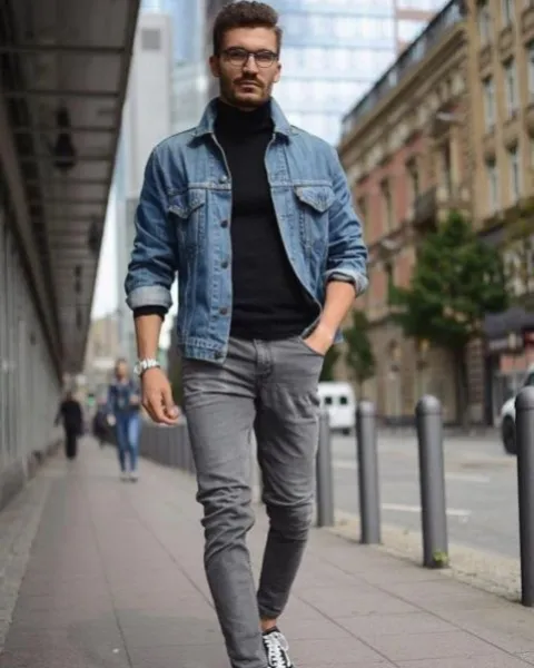 Outfit keren satu ini cocok untuk kalian yang suka memakai outer. Berhubung pemakaian denim jaket ini juga lagi ngetren di mana-mana, jadi outfit berjaket ini cocok untuk kalian pakai ke kampus. Untuk bawahannya, kalian bisa menggunakan celana jeans atau celana chino berwarna gelap, lalu ditambah mix and match dengan sepatu chelsea boots yang akan membuat kalian semakin bertambah kelihatan trendy.