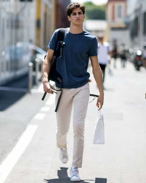 Outfit ke kampus ini sangat cocok untuk kalian yang menyukai gaya simple. Coba deh padukan kaos polos kalian dengan celana jeans, kalian akan terlihat cool! Perpaduan kaos dan celana jeans emang nyaman untuk dipakai berkegiatan sehari-hari, termasuk untuk outfit keren ke kampus. Supaya terlihat semakin keren, jangan lupa padukan juga dengan sneakers, ya!